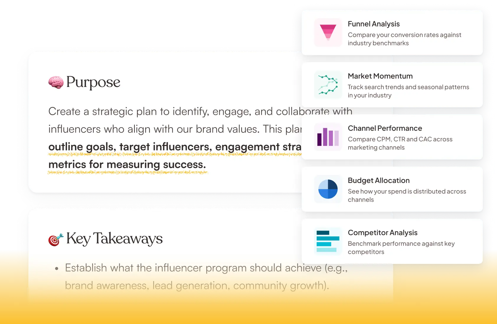 Take advantage of marketing-native AI to create personalized briefs, digestible graphs, and bespoke proposals in minutes, slashing errors and freeing up headcount to do higher leverage activity.