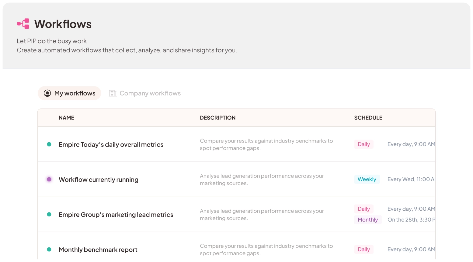 PIP turns your knowledge and our expertise into insights and action plans - built for how modern marketers work.